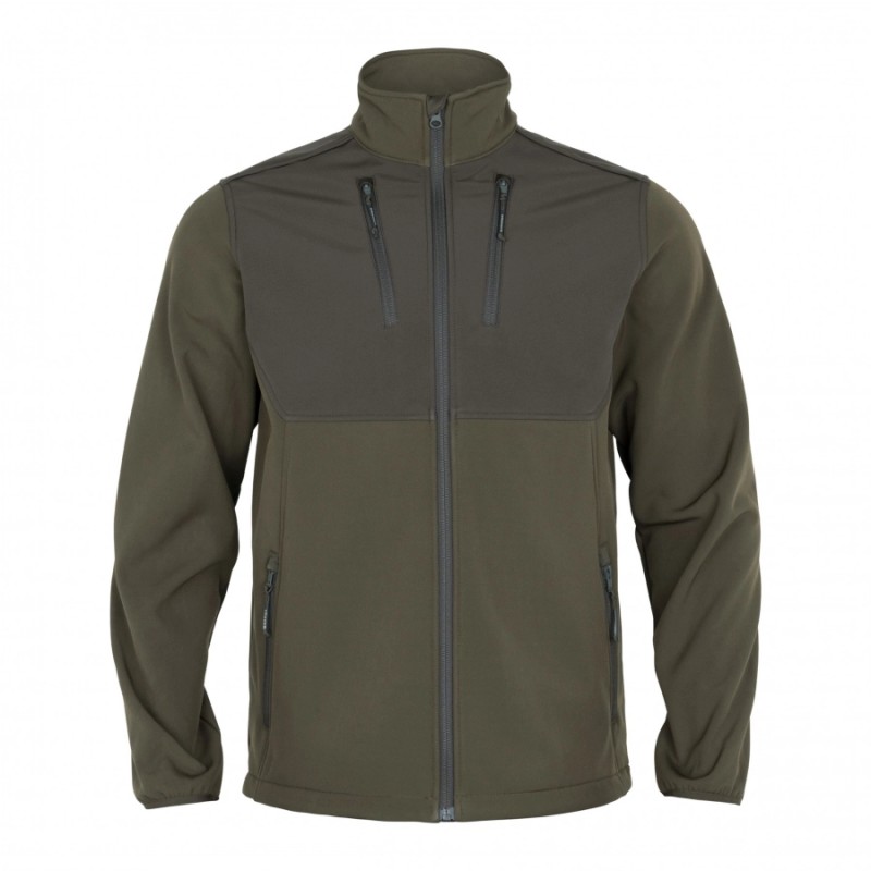 Zastosowany bonded softshell fleece jest miękki w dotyku, elastyczny i wyjątkowo cichy, dzięki czemu nie generuje szelestów podczas poruszania się w terenie. Materiał pracuje wraz z ciałem, a praktyczny krój zapewnia dobre dopasowanie bez ograniczania mobilności zarówno podczas marszu, jak i dłuższego postoju. Centralna patka przeciwwiatrowa skutecznie chroni przed chłodnymi podmuchami, zwiększając komfort w zmiennych warunkach pogodowych.