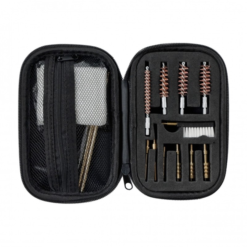 Całość została zapakowana w wytrzymałe, zamykane etui z zamkiem błyskawicznym, które utrzymuje wszystkie elementy w idealnym porządku i chroni je podczas transportu. Niewielkie wymiary sprawiają, że zestaw bez problemu zmieści się w torbie strzeleckiej lub plecaku.