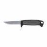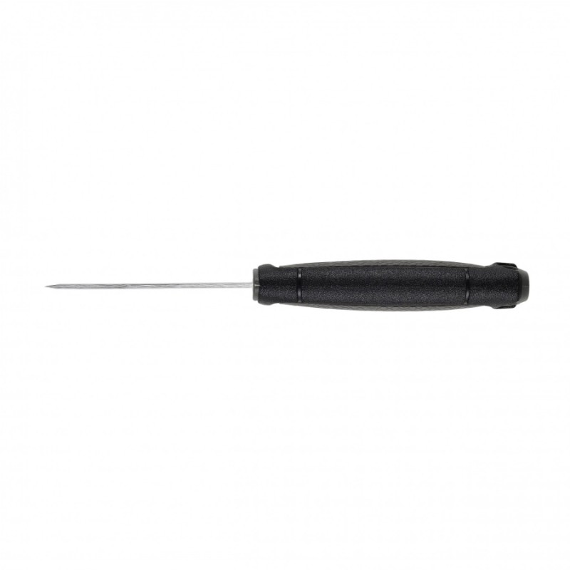 Rękojeść wykonana w całości z wytrzymałego polipropylenu (PP) jest odporna na wilgoć, zabrudzenia i niskie temperatury. Ergonomiczny profil oraz wyraźny jelec chronią dłoń przed zsunięciem się na ostrze, podnosząc poziom bezpieczeństwa podczas intensywnego użytkowania. Otwór na końcu rękojeści umożliwia zamocowanie linki lub paracordu, co ułatwia zabezpieczenie noża w trudnym terenie. Sztywna konstrukcja przekłada się na pewność podczas cięcia twardszych materiałów, rozłupywania drobnej rozpałki czy wykonywania drobnych napraw sprzętu.