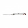 Elegancki charakter noża podkreślają polerowane tuleje dystansowe efektownie anodowane na kolor czerwony.