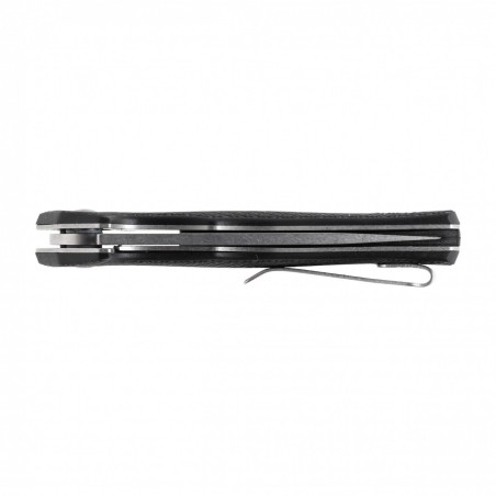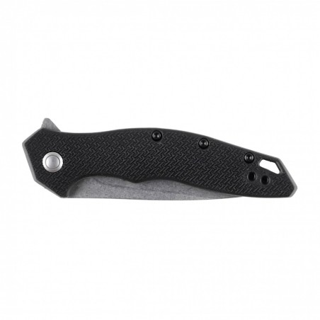 Nóż posiada w blokadę typu Liner Lock, czyli mechanizm szeroko wykorzystywany i bezpieczny. Korpus foldera osłonięto czarnymi okładzinami z nylonu wzmacnianego włóknem szklanym. W dolnej części rękojeści wywiercono otwór na smycz lub breloczek. Chropowata faktura okładzin sprawia, że nóż dobrze leży w dłoni.