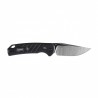 Nóż ma automatyczny mechanizm blokujący typu Push-Button Lock, często stosowany w nożach składanych. Zwolnienie i odblokowanie ostrza odbywa się poprzez naciśnięcie przycisku umieszczonego w rękojeści. Po naciśnięciu przycisku blokada cofa się, umożliwiając złożenie głowni, często z wykorzystaniem wspomaganego lub automatycznego mechanizmu otwierania.