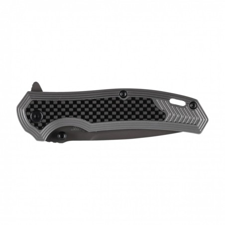 Kershaw Kershaw Fringe 8310 to nowoczesny nóż edc, w którym zastosowano stal nierdzewną 8Cr13MoV, mechanizm wspomagający rozkładanie głowni, stalowe okładziny wzbogacone włóknem węglowym oraz mocną blokadę frame-lock.