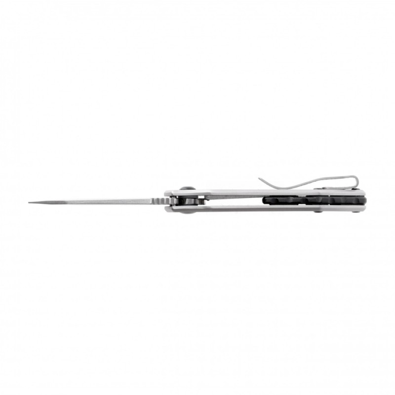 W konstrukcji noża zastosowano drobne akcenty ozdobne w postaci oksydowanego na czarno pivota, piaskowanego klipsa oraz backspacera z tworzywa FRN (nylon wzmacniany włóknem szklanym).