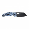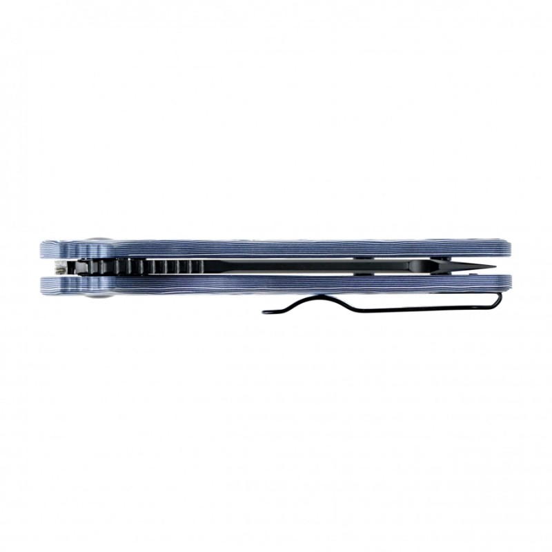 Elegancka i wyprofilowana rękojeść została wykonana z lekkiego aluminium. Wyposażono ją również w podcięcia na palce, które dodatkowo zwiększają przyczepność. Zapewniają ona kontrolę nad nożem w tłustych lub mokrych od deszczu dłoniach (nawet w rękawicach). A dzięki przemyślanej geometrii chwytu nóż pracuje naturalnie i nie męczy dłoni, mimo swoich kompaktowych wymiarów. Na końcu rękojeści umieszczono przekładany klips do głębokiego przenoszenia w kieszeni (Deep-Carry).
