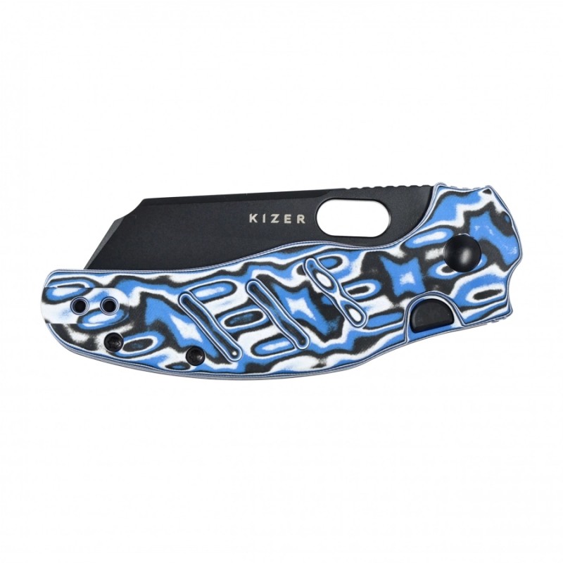 Nóż ma mechanizm blokujący typu Button Liner-Lock, często stosowany w nożach składanych marki Kizer. Zwolnienie i odblokowanie ostrza odbywa się poprzez naciśnięcie przycisku umieszczonego w rękojeści, który współpracuje z podłużną, elastyczną listwą. Po naciśnięciu przycisku blokada cofa się, umożliwiając złożenie głowni.
