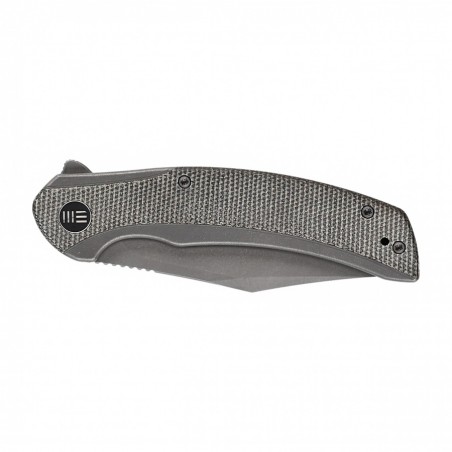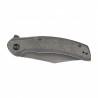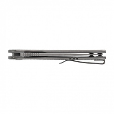 Rękojeść wykonano z połączenia micarty oraz tytanu, metalu lekkiego i niepodatnego na uszkodzenia mechaniczne. Wygładzone krawędzie okładzin poprawiają pewność uchwytu i sprawiają, że narzędzie dobrze leży w dłoni. Producent zadbał również o wygodny transport noża, wyposażając go w obustronny, tytanowy klips.