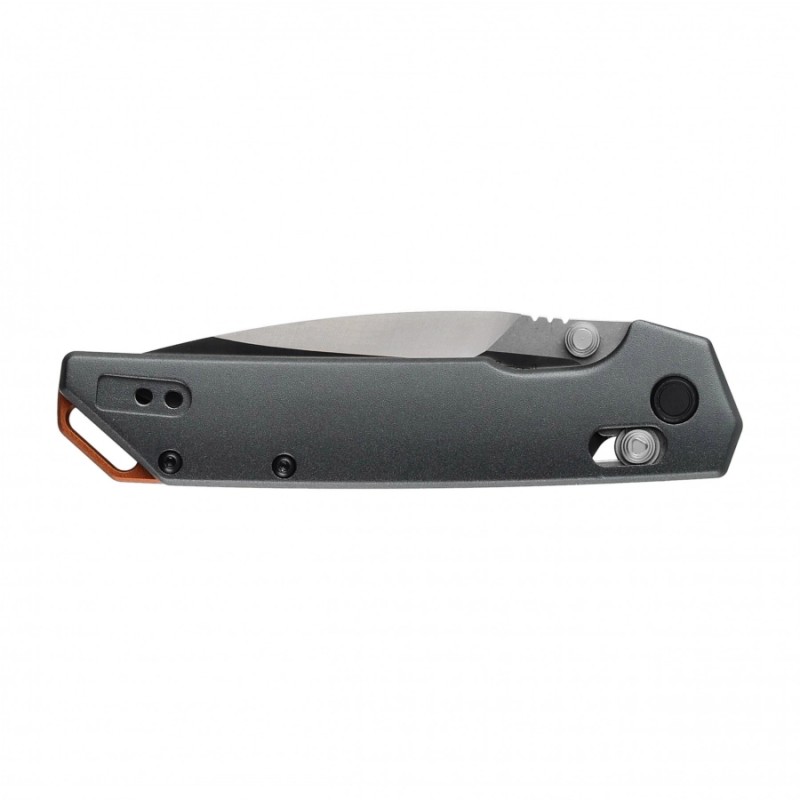 Wykonana z ciemnoszarego aluminium rękojeść nadaje narzędziu chłodnej elegancji. Zapewnia też wygodny chwyt. Wieńczy ją otwór na brelok lub smycz.