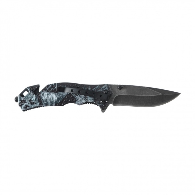 Głownia o profilu Drop Point wykonana ze stali nierdzewnej zapewnia dobrą kontrolę cięcia i wszechstronność zastosowań. Częściowe, obustronne zdobienie głowni nadaje nożowi charakteru i podkreśla jego outdoorowy styl. Rękojeść została w całości ozdobiona grawerem o tematyce myśliwskiej, co czyni ten model atrakcyjnym wizualnie również jako prezent. W codziennym użytkowaniu warto pamiętać o regularnej konserwacji ostrza, a odpowiednio dobrane ostrzałki pozwolą utrzymać jego pełną funkcjonalność przez długi czas.
