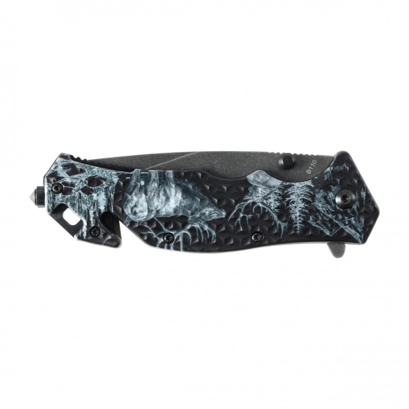 Za bezpieczeństwo pracy odpowiada sprawdzona blokada Liner Lock, która stabilnie zabezpiecza ostrze w pozycji otwartej. Stalowy klips umożliwia wygodne przypięcie noża do paska lub krawędzi kieszeni, zapewniając szybki dostęp w każdej sytuacji. Składany nóż myśliwski Kandar z grawerem to połączenie praktyczności, trwałości i estetycznego wykończenia, które dobrze odnajdzie się zarówno w terenie, jak i w codziennym wyposażeniu użytkownika.
