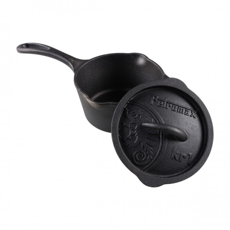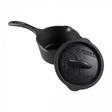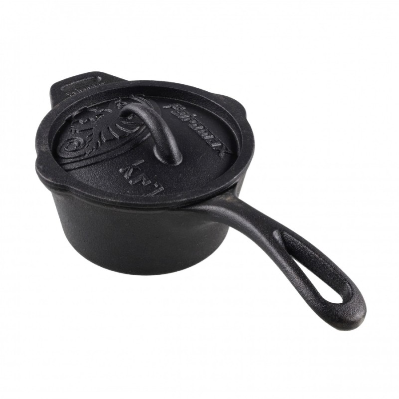 Żeliwny Rondel PETROMAX 1 L z pokrywką do doskonałe naczynie służące do przyrządzania sosów oraz potraw w warunkach terenowych. Będzie on niezastąpionym akcesorium dla każdego pasjonata gotowania na świeżym powietrzu. Dzięki funkcjonalnemu kształtowi z ergonomicznym uchwytem, przygotowanie zasmażek, redukcja wywarów czy tworzenie baz pod aromatyczne sosy stanie się wyjątkowo proste. Naczynie doskonale sprawdza się również przy karmelizowaniu cebuli, przygotowywaniu palonego masła czy szybkim podgrzewaniu wody. Rondel będzie świetnym elementem wyposażenia razem z naczyniami turystycznymi.