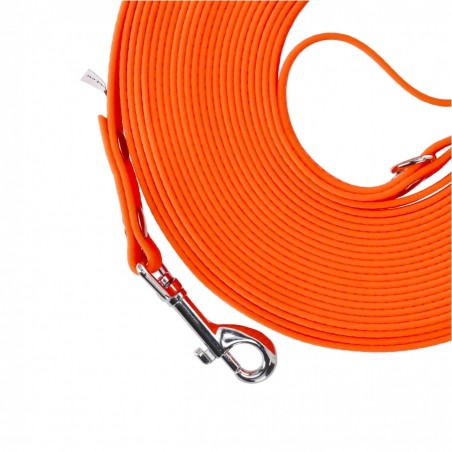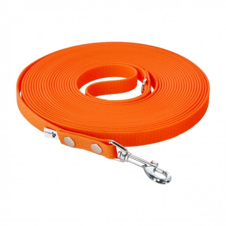 Smycz BioThane 4wild o długości 10 metrów to praktyczne rozwiązanie dla opiekunów psów, którzy cenią wygodę, trwałość i bezpieczeństwo podczas spacerów. Długa taśma pozwala pupilowi swobodnie eksplorować otoczenie, a jednocześnie daje właścicielowi pełną kontrolę nad sytuacją. Intensywny pomarańczowy kolor zwiększa widoczność w terenie, dzięki czemu smycz doskonale sprawdza się podczas spacerów w lesie, na łąkach czy w trudniejszych warunkach pogodowych. To funkcjonalne akcesorium dla psów, które ułatwiają codzienne aktywności z pupilem.