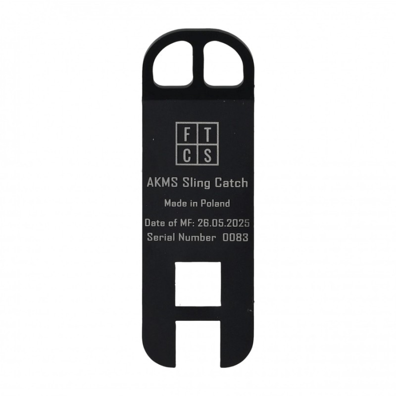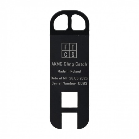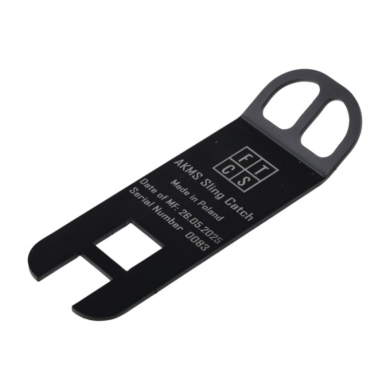Zaczep zawieszenia FTCS AKMS to dedykowane rozwiązanie dla użytkowników karabinków opartych o platformę AKMS z kolbą składaną pod spód broni (underfolding). Element wykonany został z jednego kawałka stali o grubości 1,5 mm i łączy niską wagę z wyjątkową wytrzymałością, umożliwiając bezpieczne korzystanie z zawieszeń jednopunktowych oraz dwupunktowych. Samo zamocowanie jest niezwykle proste – adapter instaluje się między komorą zamkową a chwytem pistoletowym bez konieczności użycia dodatkowych śrub. Gładkie krawędzie oraz czarne wykończenie i indywidualny grawer z numerem seryjnym i datą produkcji podkreślają wysoką jakość wykonania tego elementu.
