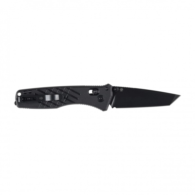 Model Aegis ma 2 składane ostrza ze stali nierdzewną AEB-L. Jest to szwedzka stal, pierwotnie opracowana przy produkcji ostrzy do żyletek, cechująca się wyjątkowo drobnoziarnistą strukturą. Dzięki tej mikrostrukturze stal ta znakomicie łączy wysoką udarność (odporność na pękanie i wykruszanie) z możliwością uzyskania cienkiej i ostrej krawędzi tnącej. Ponadto jest bardzo odporna na korozję i stosunkowo łatwa do naostrzenia, co czyni ją ulubionym wyborem dla wszelkich intensywnie używanych noży. Głownie ostrze zostało pokryte ciemną powłoką PVD.