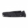 W nożu zastosowano rękojeść pokrytą okładzinami z czarnego tworzywa G-10. Jest to wytrzymały i lekki kompozyt wykonany z laminatu szklano-epoksydowego. Charakteryzuje się wysoką odpornością na wilgoć, chemikalia i ekstremalne temperatury. Dodatkowo teksturowana powierzchnia przekłada się na pewny chwyt, co dodatkowo zwiększa kontrolę nad nożem podczas użytkowania.