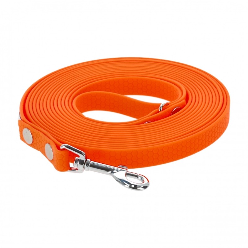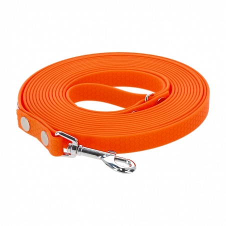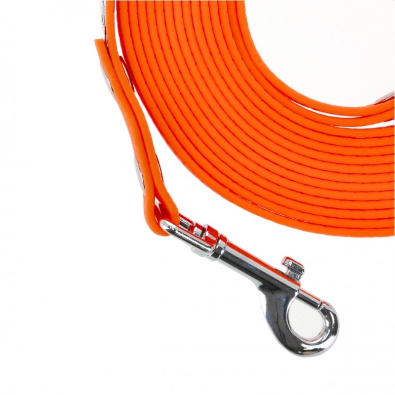 Smycz BioThane 4wild o długości 5 metrów to praktyczne rozwiązanie dla opiekunów psów, którzy cenią wygodę, trwałość i bezpieczeństwo podczas spacerów. Długa taśma pozwala pupilowi swobodnie eksplorować otoczenie, a jednocześnie daje właścicielowi pełną kontrolę nad sytuacją. Intensywny pomarańczowy kolor zwiększa widoczność w terenie, dzięki czemu smycz doskonale sprawdza się podczas spacerów w lesie, na łąkach czy w trudniejszych warunkach pogodowych. To funkcjonalne akcesorium dla psów, które ułatwiają codzienne aktywności z pupilem.