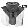 Niezwykle lekka i zajmująca niewiele miejsca osłona jednocześnie jest na tyle wysoka, aby dokładnie zakryć palnik z kartuszem, dzięki czemu skutecznie ochroni go przed wiatrem.