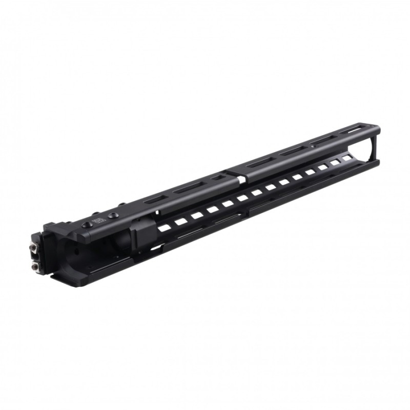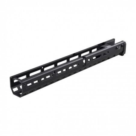 Łoże FTCS w rozmiarze L (Dużym), przeznaczone do karabinków z rodziny AK/AKM. Jest wykonane z precyzyjnie frezowanego aluminium i wykończone dodatkowo matową powłoką Cerakote, która doskonale zabezpiecza metal i nadaje pewnego chwytu nawet w rękawicach taktycznych. System otworów mocujących M-LOK po bokach oraz spodzie łoża umożliwia swobodny montaż, oraz konfigurację oświetlenia czy chwytów, a ażurowa konstrukcja zapewnia wydajną wentylację i skuteczne odprowadzanie ciepła.