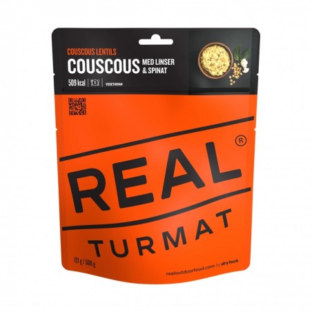 Żywność liofilizowana Real Turmat Kuskus z soczewicą i szpinakiem 500 g to aromatyczna, roślinna energia zamknięta w lekkiej saszetce. Wyrazisty smak zawdzięcza starannie dobranym przyprawom oraz bogactwu warzyw: soczewicy, marchwi, cebuli, fasolce, kalafiorowi, szpinakowi i selerowi. Wystarczy dodać ciepłą wodę, odczekać kilka minut i cieszyć się sycącym, ciepłym posiłkiem, który smakuje równie dobrze na szlaku, co na biwaku. To żywność turystyczna, która pozwala jeść wartościowo i wygodnie, bez względu na to, gdzie jesteś.