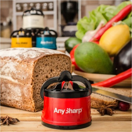 Sam proces ostrzenia jest niezwykle prosty, wymaga jedynie delikatnego przeciągania krawędzi tnącej między płytkami od nasady klingi aż po czubek. Czynność należy powtarzać do uzyskania satysfakcjonującej ostrości. Wygodę użytkowania ostrzałki AnySharp zapewnia podstawa z mocną przyssawką próżniową, która pozwala na stabilne przytwierdzenie osełki do gładkich powierzchni szklanych, metalowych, ceramicznych i plastikowych.
