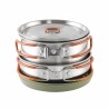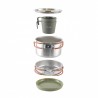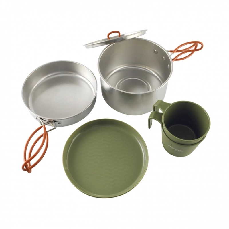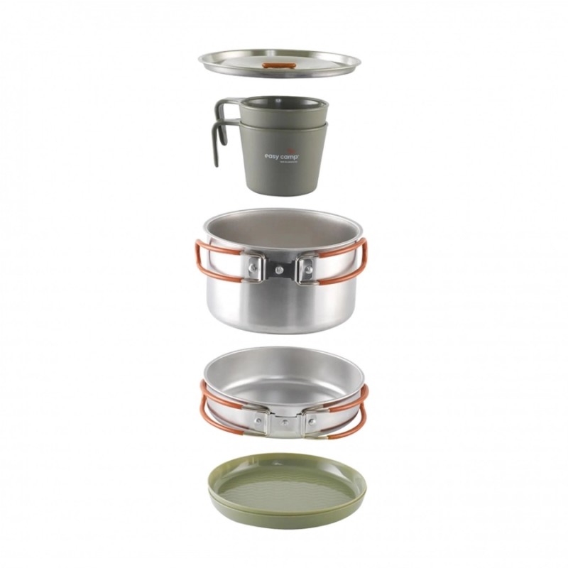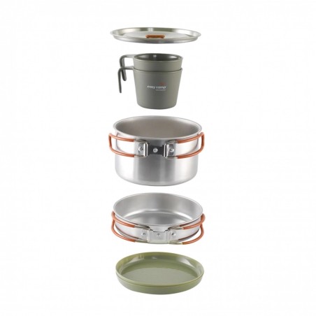 Easy Camp Moss 2 Cook Set to praktyczny zestaw naczyń dla dwóch osób, który łączy trwałość z inteligentnym, składanym designem. Dno z innowacyjną powłoką MicroGrid skutecznie zapobiega przywieraniu potraw, a dzięki pokrywkom ze wbudowanymi otworami do odsączania eliminują potrzebę posiadania dodatkowych akcesoriów do odcedzania. Bezpieczeństwo użytkowania zapewniają stalowe uchwyty z silikonową osłoną, które chronią przed oparzeniami i umożliwiają solidne uchwycenie naczynia podczas gotowania nad otwartym ogniem. Dodatkowo w zestawie znajdziesz kubki oraz miski z odpornego tworzywa sztucznego. Do naczyń warto zaopatrzyć się również w sztućce lub niezbędnik.