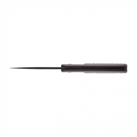 W nożu zastosowano okładziny rękojeści z tworzywa G10. Jest to wytrzymały i lekki kompozyt wykonany z laminatu szklano-epoksydowego. Charakteryzuje się wysoką odpornością na wilgoć, chemikalia i ekstremalne temperatury. Dodatkowo teksturowana powierzchnia przekłada się na pewny chwyt, co dodatkowo zwiększa kontrolę nad nożem podczas użytkowania.