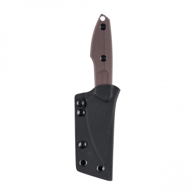Wraz z nożem Kizer Splinter 1087A1 otrzymasz lekką i praktyczną kaburę wykonaną z mocnego tworzywa, jakim jest Kydex. Za jej pomocą możesz bezpiecznie transportować nóż przy pasie bądź kieszeni spodni. Co istotne, otwór w rękojeści umożliwia przytroczenie do noża smycz bądź paracord.