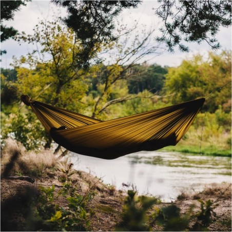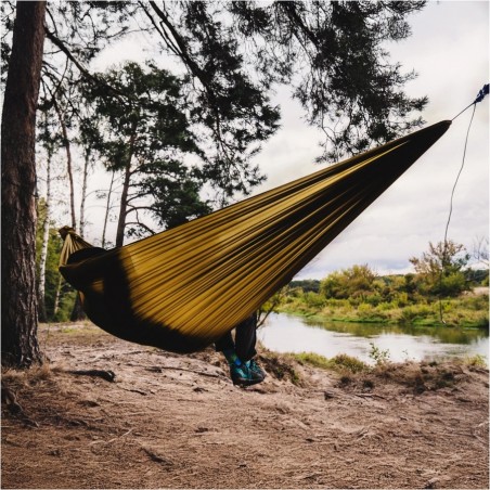 Bystry szyty jest z wytrzymałej tkaniny poliamidowej w splocie ripstop, produkowanej według ściśle określonych parametrów. Materiał jest lekki, oddychający, szybkoschnący i przyjemny dla skóry, a delikatna impregnacja zwiększa odporność na zabrudzenia. Wygodny pokrowiec typu mufka ułatwia szybkie pakowanie i rozwieszanie. To uniwersalny hamak rekreacyjny, który możesz rozbudować o dodatkowe akcesoria i dopasować do własnego stylu wypoczynku.