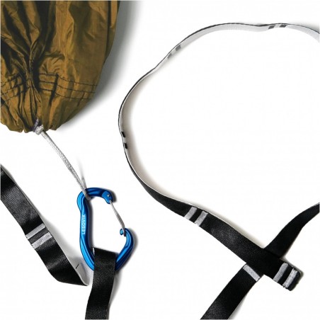 Nowy, bezwęzłowy i regulowany system zawieszenia Sneka sprawia, że rozwieszenie hamaka jest szybkie i intuicyjne. Wystarczy kilka chwil, by stworzyć własną przestrzeń relaksu. Powiększone wymiary 330 × 145 cm zapewniają wygodę osobom o wzroście nawet do 205 cm, a udźwig do 250 kg daje poczucie bezpieczeństwa i solidności. Przestronna sypialnia pozwala ułożyć się komfortowo, niezależnie od pozycji, a lekka konstrukcja sprawia, że hamak bez trudu zmieści się w plecaku.