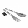 Wraz z naczyniem Esbit Classic otrzymasz w zestawie metalowe sztućce (nóż oraz widelec) umożliwiające wygodne spożywanie posiłku w terenie. Oba elementy możesz złożyć ze sobą i przytroczyć do termosu za pomocą dołączonego paska.