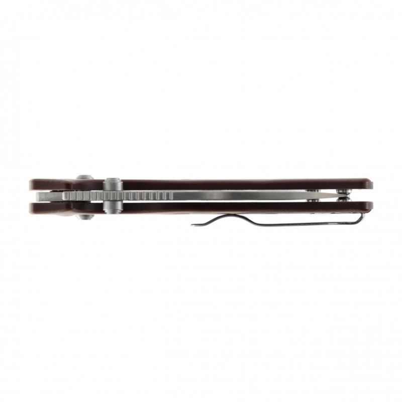 Firma Kizer zastosowała tutaj innowacyjną blokadę Clutch Lock. Konstrukcja blokady polega na umieszczeniu w rękojeści symetrycznego bolca, który w momencie otwarcia noża blokuje ostrze. Otwieranie za pomocą kołka pod kciuk zapewnia szybkie i naturalne rozłożenie noża zawsze wtedy, gdy tego potrzebujesz.