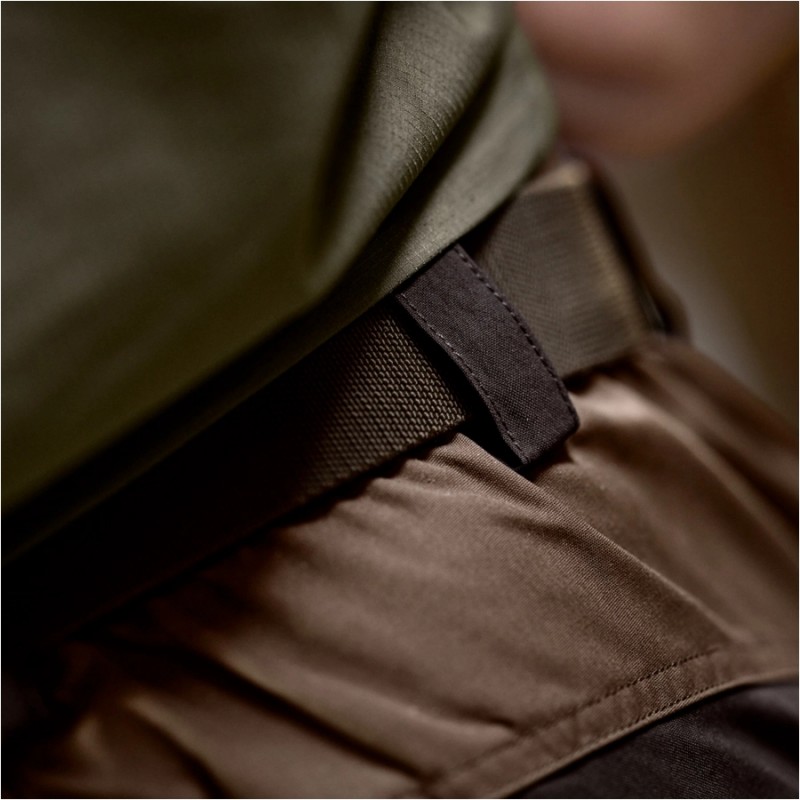 Model Fjell wykonano z wytrzymałej mieszanki poliestru i bawełny o strukturze przypominającej płótno, wzbogaconej o elastyczne wstawki zwiększające mobilność. Materiał jest odporny na intensywne użytkowanie, a elastyczny pas z tyłu poprawia dopasowanie do sylwetki. Lekka konstrukcja sprawia, że spodenki nie obciążają podczas dłuższego noszenia, nawet w wysokich temperaturach.