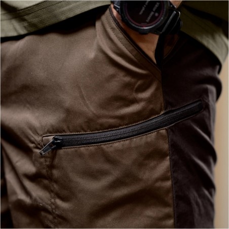 Praktyczne rozwiązania, takie jak łatwo dostępne przednie kieszenie oraz kieszenie udowe zapinane na zamek, pozwalają bezpiecznie przechowywać niezbędne drobiazgi. Zapięcie na guzik znane m.in. z jeansów zapewnia stabilność i trwałość w codziennym użytkowaniu. Spodenki Härkila Fjell to uniwersalny wybór na letnie dni spędzane w terenie i poza nim.