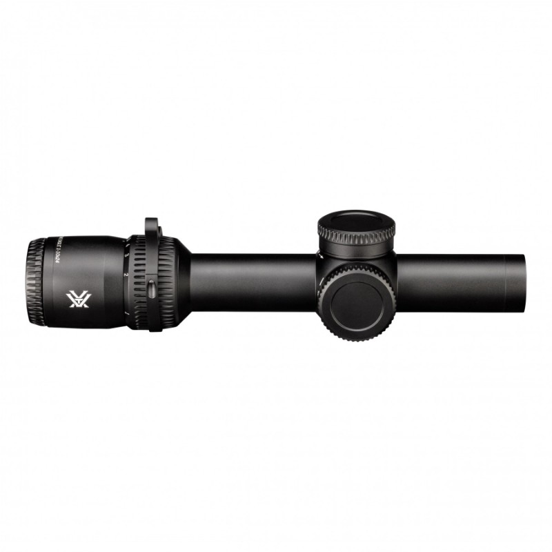 Vortex Strike Eagle 1-10×24 FFP to zaawansowana luneta typu LPVO (Low Power Variable Optic) z siatką celowniczą EBR-8 BDC w pierwszym planie, podświetlanym znakiem celowniczym oraz zmiennym powiększeniem 1-10×, zaprojektowana z myślą o strzelcach sportowych, taktycznych oraz użytkownikach oczekujących maksymalnej wszechstronności. Zakres powiększenia 1-10× pozwala błyskawicznie przechodzić od dynamicznego strzelania na krótkich dystansach do precyzyjnego namierzania oddalonych celów. Kompaktowa konstrukcja, niewielka masa, powiększenie 10× i wytrzymałość charakterystyczna dla produktów Vortex Optics sprawiają, że model ten stanowi idealne narzędzie dla strzelców oczekujących przewagi w każdej sytuacji.