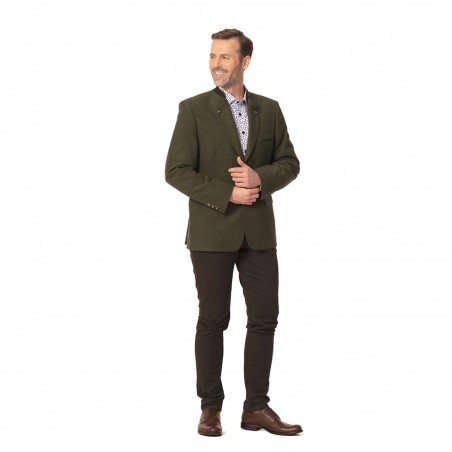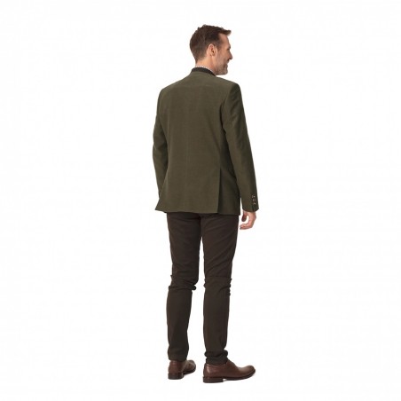Tagart REN to myśliwska marynarka męska o klasycznym kroju. Jej krój jest stworzony specjalnie na wydarzenia o formalnym charakterze. Zastosowanie bawełny w połączeniu z włóknami Ryon (sztuczny jedwab) oraz poliestrem zapewnia przyjemną estetykę połączoną z odpornością na powstawanie zagnieceń. Zamszowe wykończenia oraz guziki z imitacją poroża stanowią elegancki akcent i doskonale uzupełniają klasyczną stylistykę marynarki. Podszewka z whiskozy charakteryzuje się wysoką trwałością oraz ułatwia zakładanie.