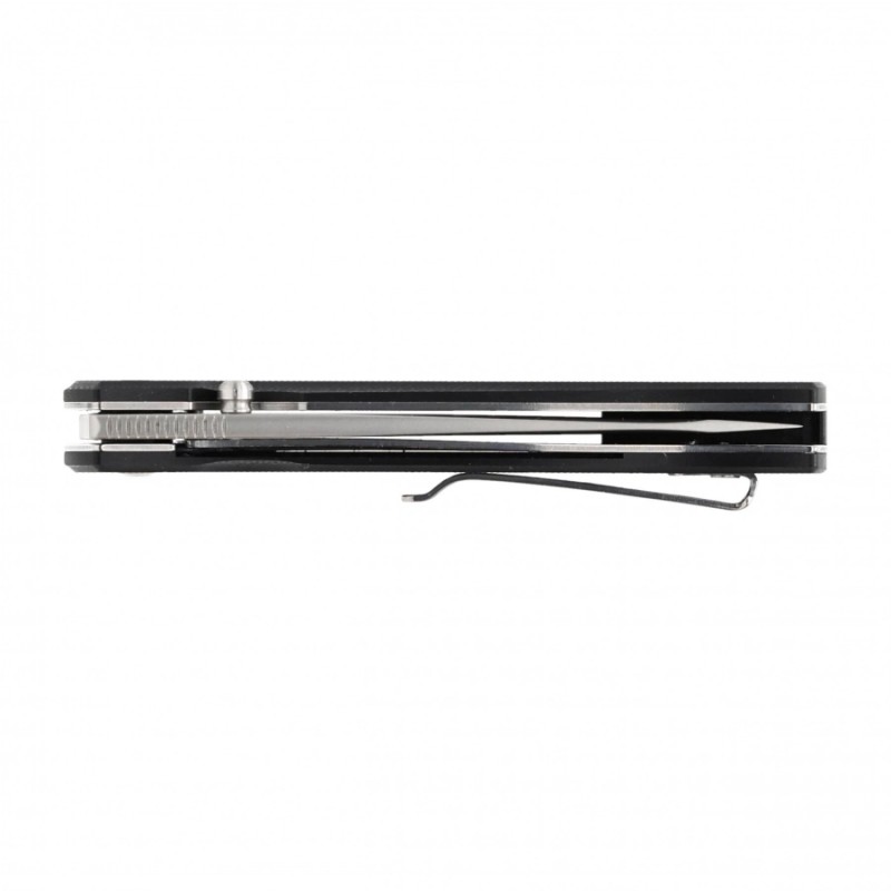 Dyskretne przenoszenie noża w kieszeni umożliwia stalowy klips o satynowanym wykończeniu.