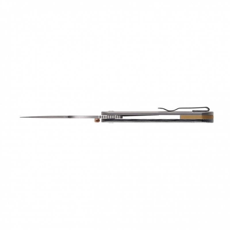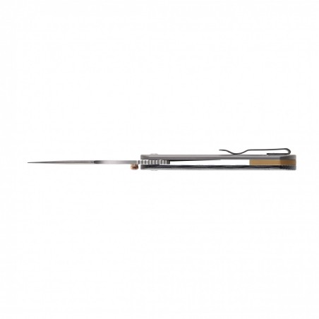 Kizer Harpoon to nóż składany klasy premium, wyposażony w rękojeść wykonaną z piaskowanego tytanu 6AL4V, który łączy ekstremalną wytrzymałość z niską wagą. Konstrukcja ma ergonomiczne podcięcie na palec wskazujący oraz nakładką na jednym z boków wykonaną z antypoślizgowej Micarty. Minimalistyczny design rękojeści podkreśla techniczny charakter narzędzia, a zintegrowany tytanowy klips typu Deep-Carry pozwali Ci na dyskretne i wygodne przenoszenie noża w kieszeni. Do modelu warto nabyć odpowiednie akcesoria.