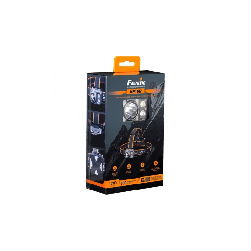 Fenix HP16R charakteryzuje się solidnym korpus odlewanym ciśnieniowo z aluminium lotniczego, które efektywnie odprowadza ciepło i chroni latarkę przed uszkodzeniami oraz warunkami atmosferycznymi. Czołówka składa się z trzech głównych elementów: modułu świecącego, zewnętrznego pojemnika zasilającego oraz elastycznej opaski. Zewnętrzny pojemnik na zasilanie posiada długi przewód ułatwiający przenoszenie na kasku bądź opasce. W komplecie znajduje się 7 klipsów zapewniających stabilne mocowanie przewodu zasilającego. Dodatkowo, pojemnik wyposażono w wstawki refleksyjne zwiększające widoczność po oświetleniu oraz fluorescencyjne oznaczenie bieguna dodatniego.