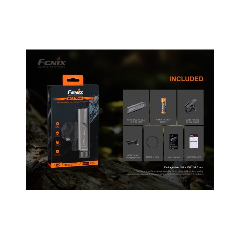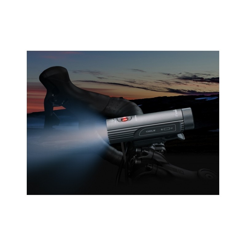 Latarka rowerowa Fenix BC21R V3.0 to doskonałe oświetlenie o imponującym strumieniu światła wynoszącym 1200 lumenów. Wyposażona jest w wymienny akumulator 18650 o pojemności 2600 mAh, port ładowania USB-C, wskaźnik poziomu naładowania oraz solidny uchwyt z systemem QD na kierownicę.