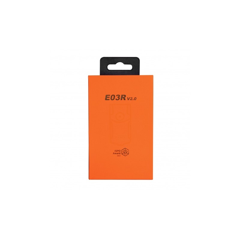 Główne innowacje w modelu E03R V2.0 obejmują blisko dwukrotnie mocniejszy strumień światła - aż 500 lumenów, zasięg do 90 metrów, wydłużony czas pracy do 30 godzin, większy akumulator 400 mAh zapewniający dłuższą żywotność oraz dodatkowe światło pulsacyjne we włączniku.