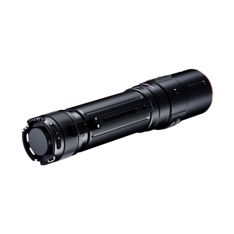 Latarka Fenix E28R V2.0 wyposażona jest w diodę LUMINUS SST40 LED emitującą maksymalny strumień światła 1700 lumenów na dystansie aż 273 m. Barwa światła jest chłodno-neutralna, co ogranicza zmęczenie oczu i zapewnia lepszą widoczność detali. Dostępne są 5 trybów pracy światła stałego: turbo, wysoki, średni, niski, eco, oraz tryb błyskowy: strobo. Obsługa latarki odbywa się za pomocą metalowego bocznego włącznika z wskaźnikiem poziomu akumulatora. Zasilanie zapewnia pojemny akumulator ARB-L18-3400, który można ładować przez port USB-C bez konieczności wyjmowania go.