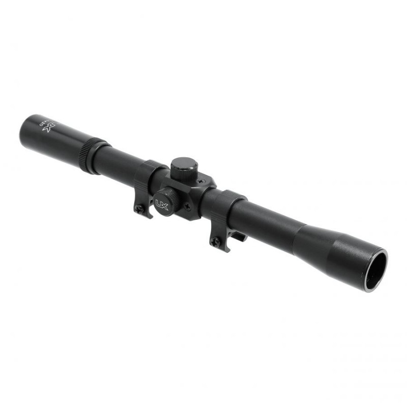 Luneta celownicza UX RS 4x20 to doskonałe rozwiązanie dla posiadaczy replik ASG oraz wiatrówek o prędkości początkowej do 250 m/s. Jej prosta konstrukcja sprawia, że jest łatwa w obsłudze i niezawodna podczas strzelania.