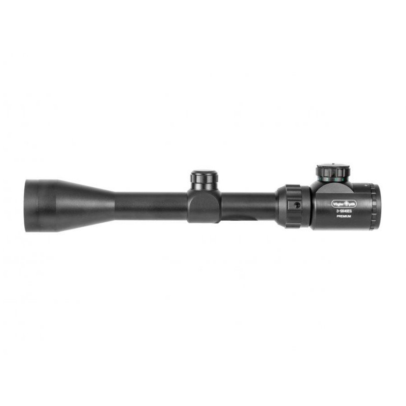 Soczewki pokryto wielowarstwową powłoką antyrefleksyjną, co poprawia transmisję światła i zapewnia jasny i ostry obraz celu. Optyka ma zmienne powiększenie 3-9x, co umożliwia strzelanie na różnych dystansach oraz wybór pomiędzy szerokim polem widzenia a mocnym przybliżeniem celu. Na okularze znajduje się moletowany pierścień do płynnej regulacji ostrości.