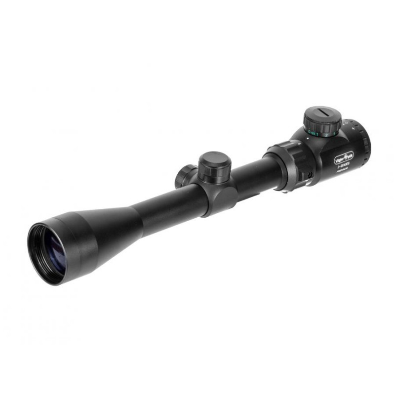 Vogler 3-9x40 to budżetowy celownik optyczny, który doskonale sprawdzi się na karabinkach wiatrówek, replikach ASG oraz broni sportowego bocznego zapłonu. Jest wyposażony w zmienne powiększenie oraz dwuczęściowy montaż na szynę 11 mm.