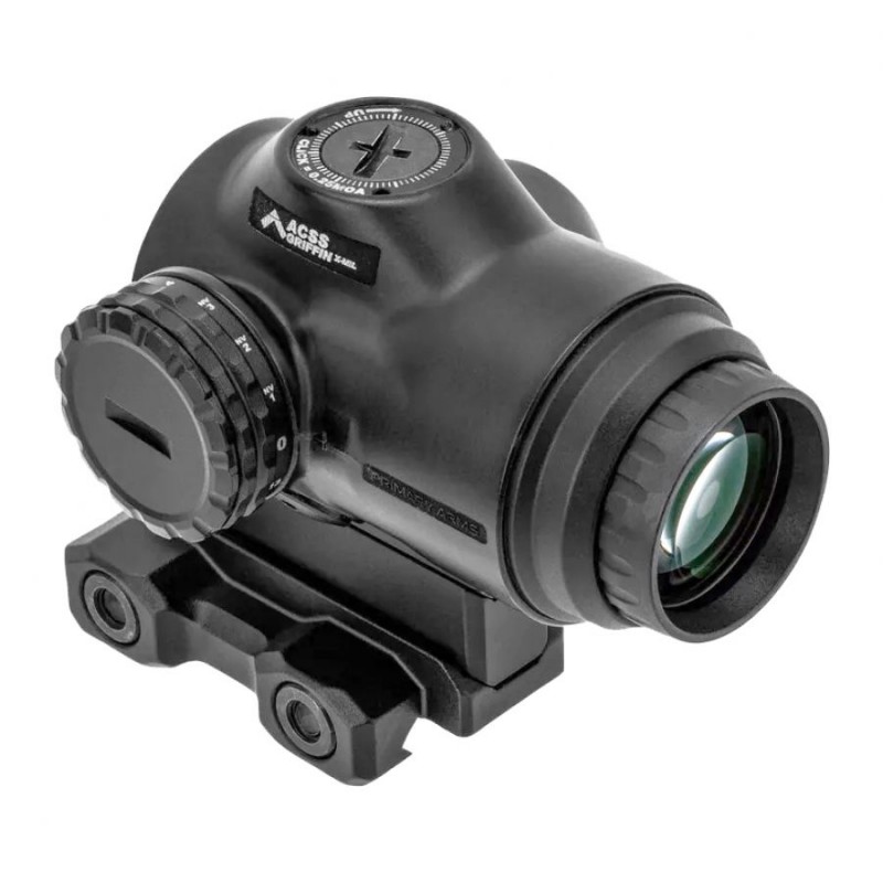 W odróżnieniu od kolimatorów, celowniki pryzmatyczne z powiększeniem oferują wyraźniejszy obraz pozbawiony błędu paralaksy. Umożliwiają także większą precyzję przy strzelaniu na większym dystansie, zachowując możliwość celowania obuocznego i świadomości sytuacyjnej. Dzięki szczelnemu aluminiowemu korpusowi, celownik jest odporny na mgłę, deszcz i wstrząsy. Posiada dużą źrenicę wyjściową oraz obszerny eyebox (68 mm), co umożliwia szybkie złożenie bez konieczności zachowania prawidłowej osi optycznej. Autorska siatka ACSS Griffin X MIL jest widoczna niezależnie od pory dnia, a podświetlenie na czerwono (podkowa i szewron) ma 13 stopni ustawień dziennych oraz 3 do noktowizji. Dzięki czujnikowi ruchu AutoLive, czas pracy na baterii może wynosić nawet 29 000 godzin.