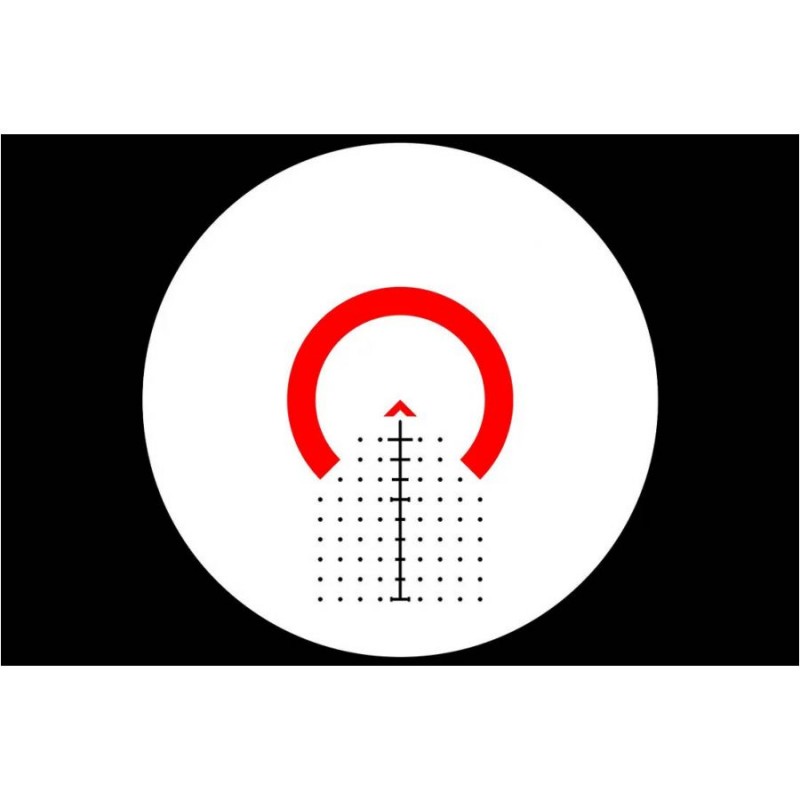 ACSS Griffin X MIL to autorska siatka Primary Arms, wyskalowana w miliradianach, która ułatwia szybkie i wygodne przeliczanie. Ma centralnie umiejscowiony cieńszy szewron (odwrócona litera V), otoczony grubszą podkową, z czytelną podziałką do szacowania dystansu. Dzięki temu system celowniczy jest intuicyjny i funkcjonalny, idealny do dynamicznego strzelania na krótkim dystansie oraz precyzyjnego na średnim dystansie.