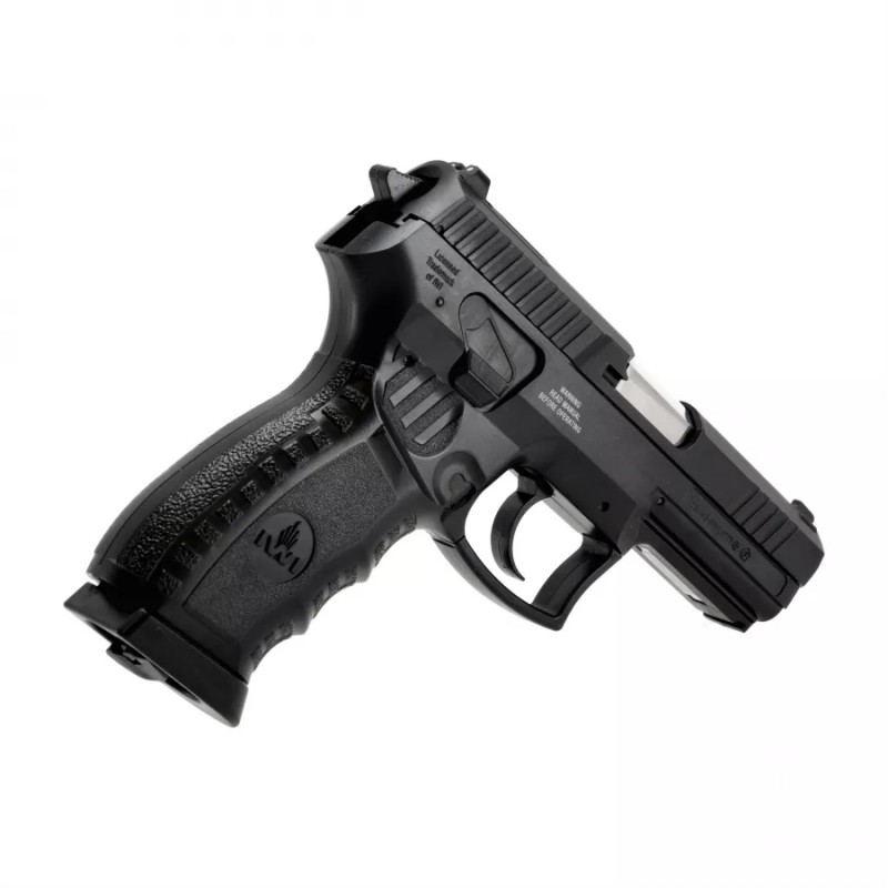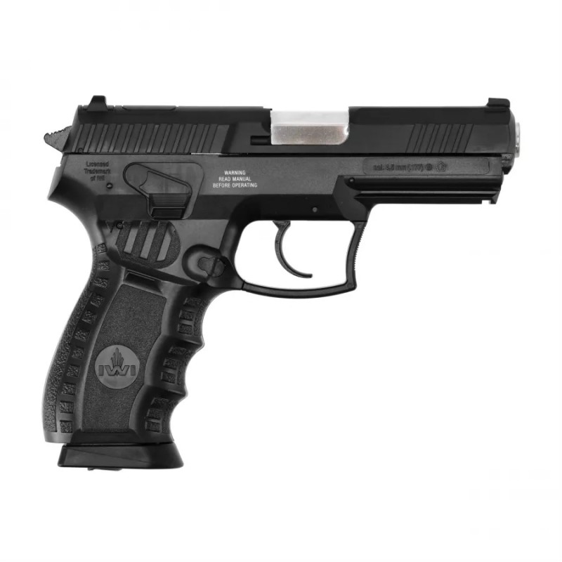 Pistolet wiatrówkowy IWI Jericho B 4,5 mm BB CO2 to nowoczesna broń pneumatyczna wystrzeliwująca stalowy śrut BB's. Cechuje go solidny, ciężki zamek wykonany z metalu, ergonomiczna rękojeść oraz szyna Picatinny do montażu akcesoriów.