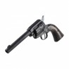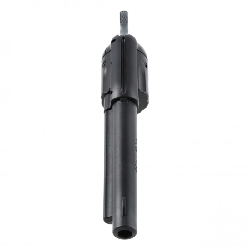 Model wykonany z metalu gwarantuje solidną konstrukcję i odpowiednią wagę, co podnosi autentyczność obsługi. Okładziny rękojeści imitujące drewno dodają charakteru, a matowe czarne wykończenie podkreśla klasyczny wygląd broni. Rewolwer działa w systemie Single Action, co wymaga ręcznego napięcia kurka przed strzałem, tak jak w oryginalnych modelach.