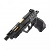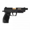 Wiatrówkę wyposażono w metalowy zamek, złotą lufę z gwintem zewnętrznym, bezpiecznik oraz funkcję częściowego rozkładania przypominającą broń palną. Stałe przyrządy celownicze z białą muszką i żółtą szczerbinką ułatwiają celowanie, zwłaszcza przy słabym oświetleniu. Dodatkowo, pistolet posiada szynę montażową umożliwiającą montaż akcesoriów takich jak laser czy latarka, oraz ergonomiczny chwyt zapewniający stabilność.