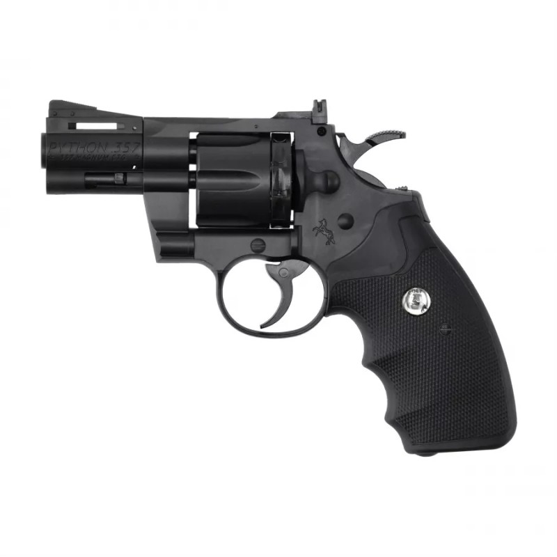 Colt Python 2,5" 4,5 mm BB CO2 to pneumatyczna replika kultowego rewolweru Magnum .357, zasilana kapsułą CO2, umożliwiająca strzelanie zarówno śrutem typu diabolo, jak i stalowymi kulkami BB.